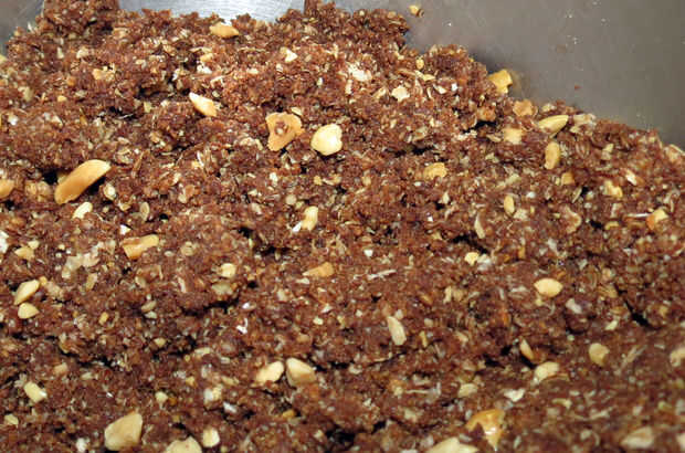 Volver la mezcla para calentar y cocinar durante 1-2 minutos hasta que la mezcla se haya espesado. Retirar del fuego, agregar vainilla. Añadir galletas graham migas, coco (o avena), y nueces y tirar hasta uniformemente recubiertos. ** He descubierto que algunas personas no les gusta la textura o el sabor de coco rallado. En ese caso, no dude en Añadir avena rápida para reemplazar el coco. Aunque me gusta coco, tiendo a prefiere usar avena para esta receta.