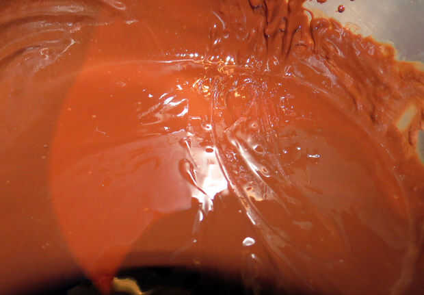 Crear un baño María y derretir el chocolate y mantequilla juntos. ** Ésos no-panaderos por ahí, tenga mucho cuidado en esta etapa a introducir agua en el chocolate. Si ni una gota se pone en la mezcla, se paralizará el chocolate y se podría así volver a comenzar.
