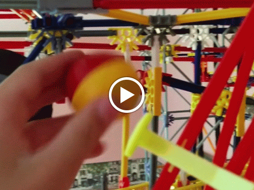 Aquí es una máquina de la bola de k'nex que fue construida por un niño de 7 años!