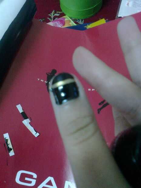 Paso 7: dejar la uña seca la pintura y aplicar color negro en la parte superior