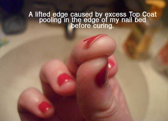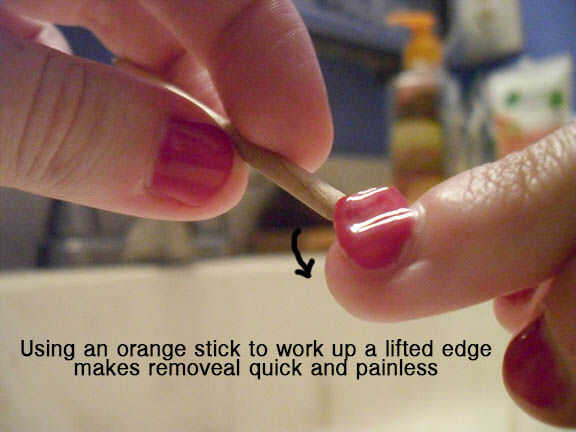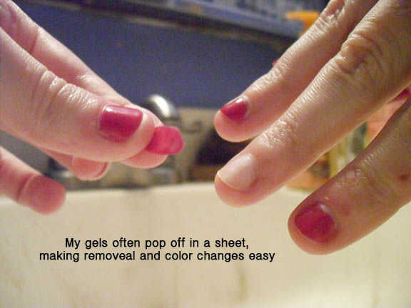 Mis geles tienden a despegarse fácilmente si trabajo encima de un borde con mi palo de naranja, o si un borde se levanta naturalmente con el tiempo.