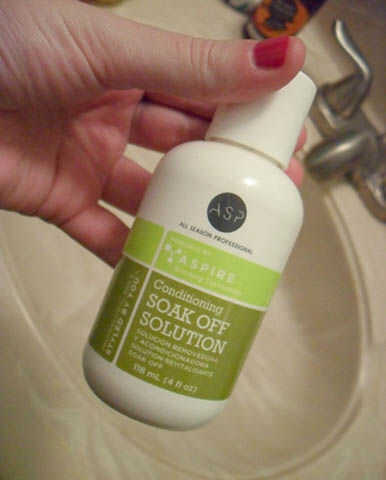 Usted puede comprar Soak Off solución, que era menos de $6. Yo nunca lo use en mis uñas, pero me alegré que lo compré cuando se derramó el pulimento en la alfombra! Las instrucciones indican que sólo tienes que remojar tus dedos y luego use una herramienta de raspado o palillo de naranja para quitar el material de gel suave.