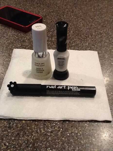1) negro uñas pluma de arte o striper 2) blanco striper o uñas pluma capa 3) base 4) pequeño grano o jewel(optional)