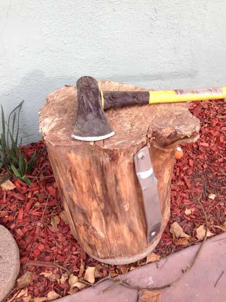 Tengo un buen muñón que utilizo para dividir la madera para mi fuego, pero a menudo es necesario moverse alrededor de la yarda a picar y volver a esconderse cuando no esté en uso. No es particularmente pesado pero quería una manera de llevar con una mano para que pudiera llevar mi maul en el otro.