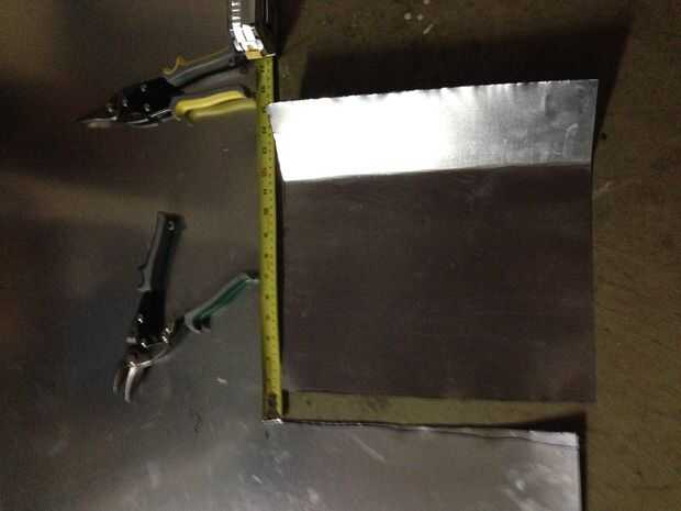 Que corte 14 "x 14" pieza de metal. Principalmente estaba pensando que quería una pieza gruesa tiempo suficiente como para doblar en un mango. Debe medir el tamaño de su tocón antes de cortar el metal.