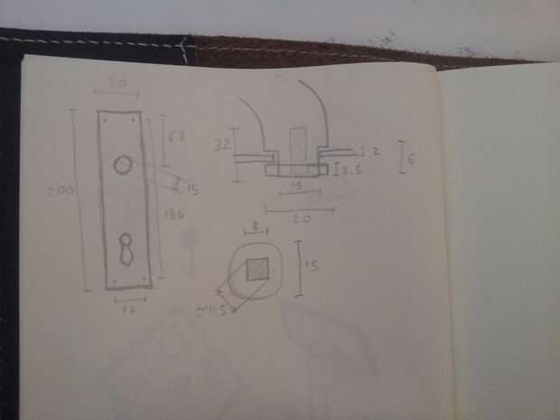 Así que tomaron algunas medidas y registrados en un bosquejo. Si usted toma una mirada que usted puede saber inmediatamente si este mango adapta a su puerta demasiado o si usted tiene que rediseñar algunas partes.