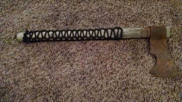 esto es una solución fácil para focos con asidera torpe usando aproximadamente 9-11 pies (según el diámetro de la manija) de Paracord (cordón de apertura).Paso 1: Haga un nudo (Foto 3) donde desea el mango para empezar, hacer una cadena más larga que