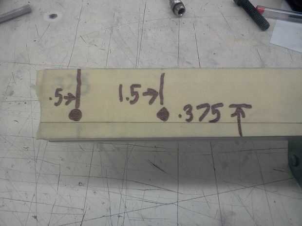 Ahora vas a trazar tus agujeros...  Los agujeros van a estar.375 desde el borde largo y otro de.5 pulgadas y una