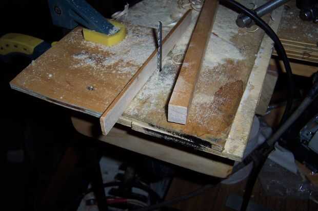 Con la madera que tenía, iba derecho para la sección de sujeción, pero un poco fina en el mango, así que hice la empuñadura más ancha, por cortar y pegar unas tiras de madera en la parte de "la manija" de la manija - usando mi asistente de Sierra de calar "VI Banco" / "Sierras".
