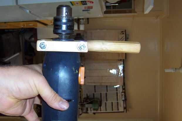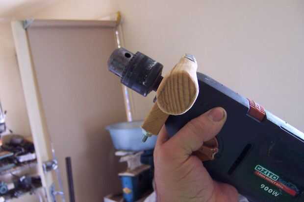 Medir dos trozos de madera, uno un poco más largo que el mango y otra un poco más largo que el taladro se encarga de "punto de montaje".