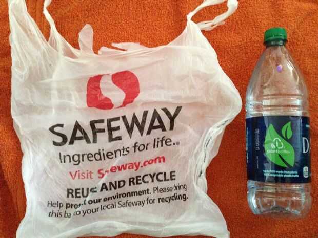 Se necesita una botella de agua y una bolsa de supermercado vacía.