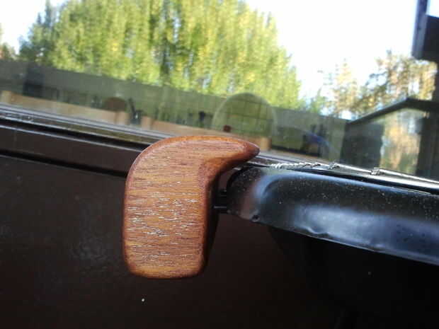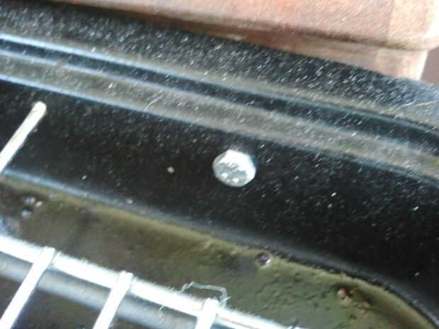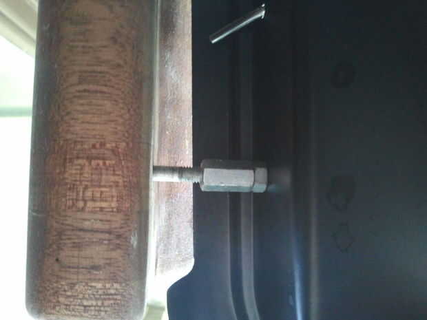Como puede verse en la primera foto, el perno va en la barbacoa. El perno de tornillo es para el mango. Pero antes del montaje, se debe perforar un orificio para asegurarse de que no rompe la madera.