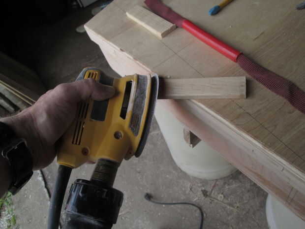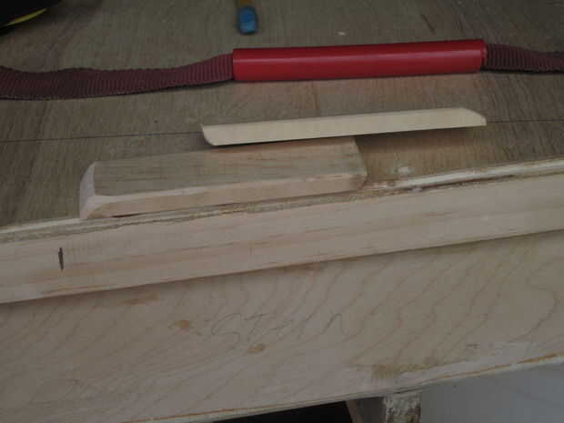 Primero redondea los bordes de los bloques de madera, el borde exterior para hacerles no como probable agarrar cualquier cosa y en los extremos interiores a mnimze cualquier tensión en la correa que va alrededor del extremo del bloque.