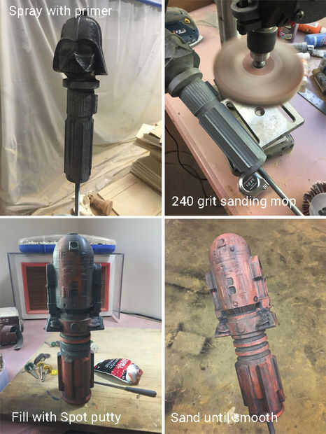 Después, es tiempo para llegar a las etapas de acabado. Les rociaron con cartilla, hizo algunos lijado con una 240 arena mop lijado y luego hacer algunos rellenos. Yo uso Bondo cristales y Spot Putty como mi relleno de ir a. Es la última arma secreta para pintado proyectos como este.