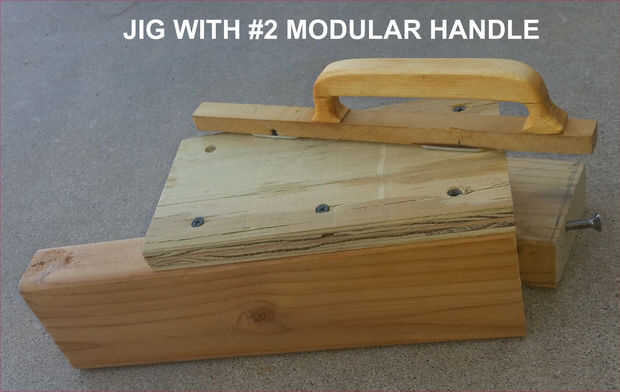 Mi segunda manija modular realmente inició como un intento de hacer un palo de empujar. Hice un mango de alguna tira de listón y una base de algún desecho 1/2" MDF que era solamente 5/8" de ancho. Que me iba a cortar un pedazo corto del final de la tira MDF y fíjelo con un tornillo en el borde posterior del resto de la tira (pero colgando hacia abajo para coger el borde posterior de lo que estaba empujando), pero se dio cuenta de varias cosas mal. (1) mientras que el MDF es un material agradable, fácil para trabajar que es barato y fácil de hojas de sierra, pequeños pedazos partir muy fácilmente cuando usted está tratando de poner los tornillos a través de ellos, y (2) este listón dejado mis manos demasiado cerca de la cuchilla para comodidad o facilidad de uso.