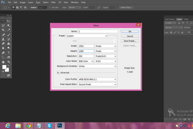 Crear documento nuevo en Photoshop (1920 x 1280 px; 300 dpi)