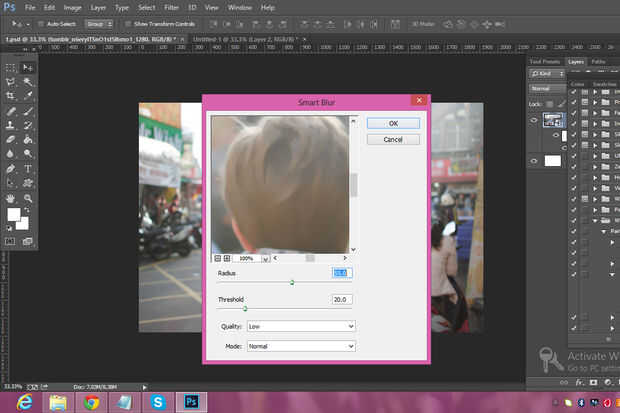 Ir a filtro-desenfocar-smart blur y ajustar los volúmenes siguientes: Radio: 55; umbral: 20; calidad: alta