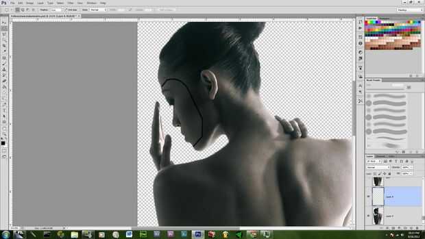 utilizando la herramienta pluma hacer una línea en la cara y hacerlo en su propio estilo.