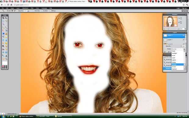 y el color sólo la cara. EVITAR LA BOCA Y LOS OJOS. luego superponer la capa y bajar la opacidad