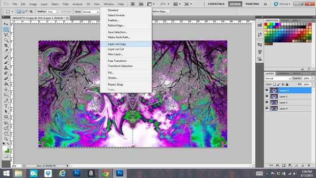 Con la herramienta marco Rectangular, seleccione la mitad izquierda de la imagen. Haga clic derecho en la selección y haga clic en el capa vía copiar o pulse ctrl + c para copiar esta selección, luego ctrl + v para pegar la selección en una nueva capa. Presione ctrl + j o haga clic en el capa y haga clic en duplicar capa para duplicar la capa.