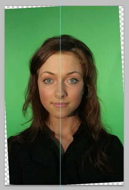 Ahora estamos listos para girar. Presione Ctrl + t o ir a Editar > Transformación libre. Girar la imagen para que la guía va directamente hacia abajo de la nariz y la boca el objeto y la cara se centra generalmente.