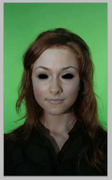 Hacer una nueva capa y lo llaman ojos . Seleccione la herramienta pincel y elija un suave, redondo cepillo con un radio de 35 píxeles (puede variar) y seleccione el negro como su color de primer plano. Rellene el ojo hasta que quede negro sólido. Ahora ajustar las capas en modo superponer de fusión y reducir su opacidad al 75%.