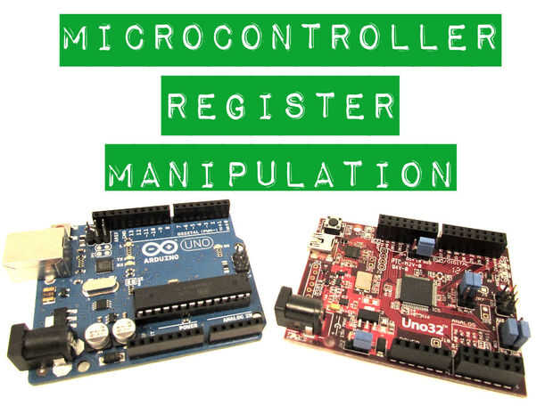 Siempre estoy sorprendido por la nueva tecnología que constantemente está saliendo que permite a aficionados como yo acceso a microcontroladores poderosos y baratos como los consejos de desarrollo de Arduino o chipKIT. Son fácil de programar y fácil de usar, pero a veces el código se puede obtener un poco más largo y lo mira y piensa "Debe haber una manera mejor/más rápido/fácil/más corto de escribir esto." Hay varias formas de simplificar los dibujos, como el uso de matrices y los bucles () para iterar a través de la asignación de números a las variables, pero uno de mis favoritos es asignar el 1 y 0 directamente a los registros en el chip. Esto sucede en el fondo cuando compilar y subir el dibujo a tu microcontrolador. Cada instrucción y sus parámetros asociados se dividen en un lenguaje más simple llamado conjunto (conjunto de instrucciones AVR ATMEL chips, conjunto de instrucciones MIPS para chips PIC) e instrucciones de montaje están diseñadas para manipular directamente los bits de registros. Ahora, usted puede tomar el tiempo para conocer la Asamblea y un nuevo IDE para implementarlo, o si sus instrucciones son sencillas y claras, se puede evitar el extra coste de espacio y tiempo por saltar sobre las instrucción conversión proceso y leer/escribir datos directamente a/desde los registros usando el estándar IDE las instrucciones que usted está familiarizado con.