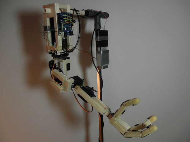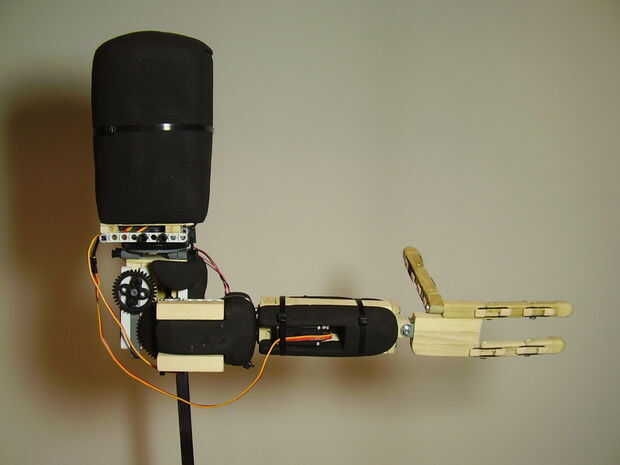 este es mi primer prototipo de un manipulador robótico. Hasta ahora, he realmente centrado en el aspecto físico del brazo por lo que no he estado trabajando mucho en el aspecto del programa. El objetivo actual de este proyecto es crear una plataforma sólida para reproducir cada día acciones y desarrollar mis aptitudes de programación. El brazo tiene 4 grados de libertad: rotación de bíceps, codo, muñeca y pinza. Todavía no he trabajado en el hombro, pero llegará un día! Es muy básico pero estoy sorprendido de lo que puede lograr por el tiempo que he pasado en este proyecto! Por cierto, este es mi primer instructivo! Disfrutar :D