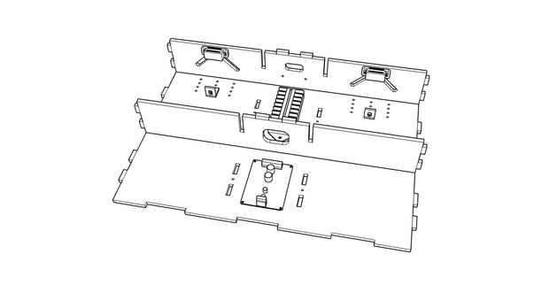 Conecte la placa media y la parte posterior de la placa a la placa inferior y atorníllelos con dos tornillos como se muestra en la imagen. Se asegurará la placa media, pero la placa trasera será suelta por ahora.