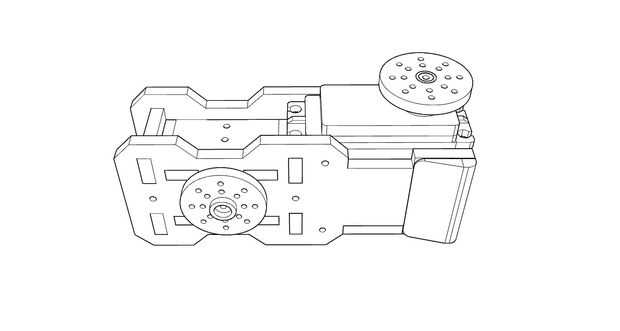 Coloque un cuerno del servo circular en la parte inferior de la Asamblea del paso anterior en su eje de rotación. Fije la posición de la bocina con 4 tornillos. Ahora hemos terminado con la subdivisión de codo del brazo.