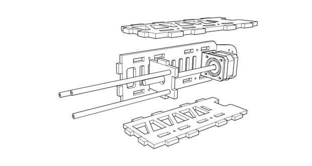 Deslice el conjunto del brazo--0 el paso en el montaje del paso brazo--10 y asegurar sus posiciones con las placas superior e inferior del antebrazo. Las cosas serán un poco apretadas, pero todo debe encajar en su lugar. Fije las placas superior e inferior en la placa lateral con 4 tornillos.