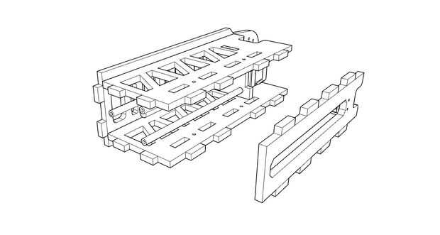 Coloque la pieza del paso anterior en el conjunto del paso de brazo - 11, carrera hacia el motor paso a paso. Una vez que la pieza se ha insertado completamente, el interruptor de límite debe ser completamente seguro. Fije la placa de medio lado que espetó solo con 4 tornillos, 2 en la placa superior y 2 en la placa inferior.