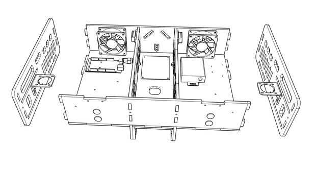 Acople las placas izquierdas y derechas del paso anterior a la Asamblea de pecho del paso pecho--5 y sujételos con 3 tornillos para la placa de la izquierda y 3 tornillos de la placa de la derecha.