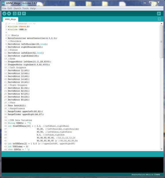 El Arduino Mega está listo para control de nivel bajo del manipulador móvil multiusos.