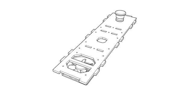 Base ventilador es un ventilador de computadora estándar de 80 mm con dos alambres, un cable rojo de 12 voltios y un cable negro de tierra. Extender cables rojo y negro del ventilador por 4 pies por medio de soldadura y encogimiento. Encamine los alambres del ventilador hacia fuera a través del agujero central. Coloque el ventilador en el primer láser cortar la pieza con 4 tornillos y 4 tuercas hexagonales.