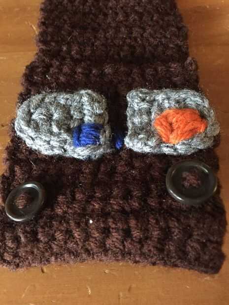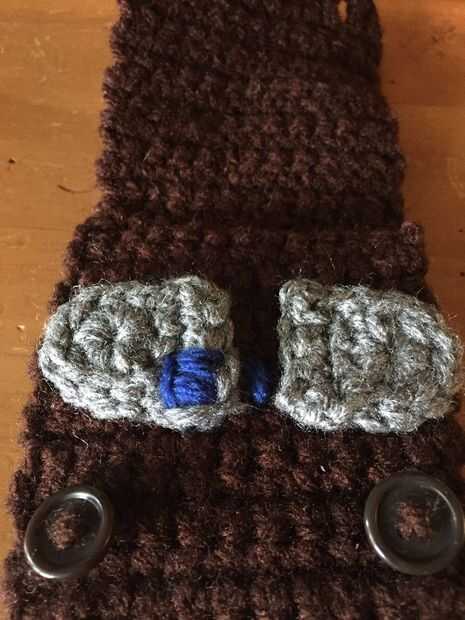 Hacer una pantalla azul en la esquina derecha de la plataforma de la izquierda hacer un punto azul entre ambas plataformas y una pantalla naranja en la esquina derecha de la plataforma adecuada para hacer a un lado de la pantalla naranja redondo (ver foto). Luego, con hilo gris claro, realizar un círculo siguiendo el círculo que hiciste al hacer el círculo mágico. Hacer una diagonal de botón a la derecha del círculo y una vez que termines con eso, hacer dos botones diagonales por lado en la parte superior la pantalla naranja (ver fotos del manipulador de vórtice de tiempo de referencia).