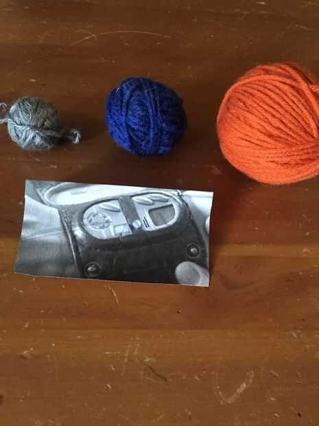 Ahora para los botones: necesita azul, naranja e hilado gris ligero