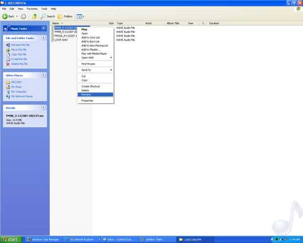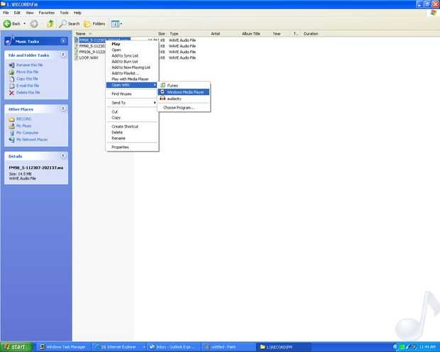 -Haga clic derecho fm grabaciones y seleccione reproducir con windows media player