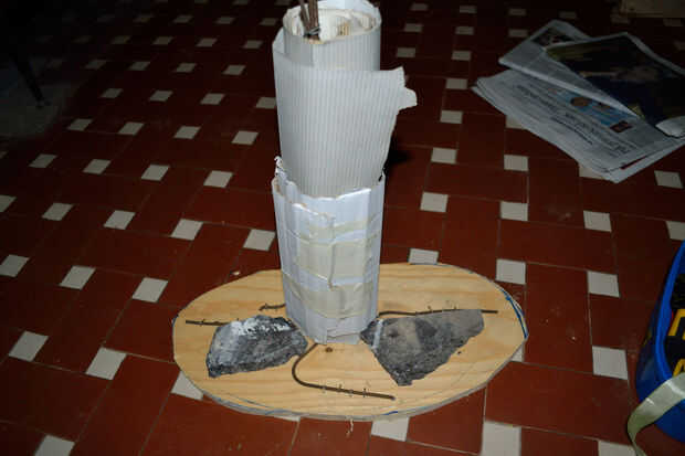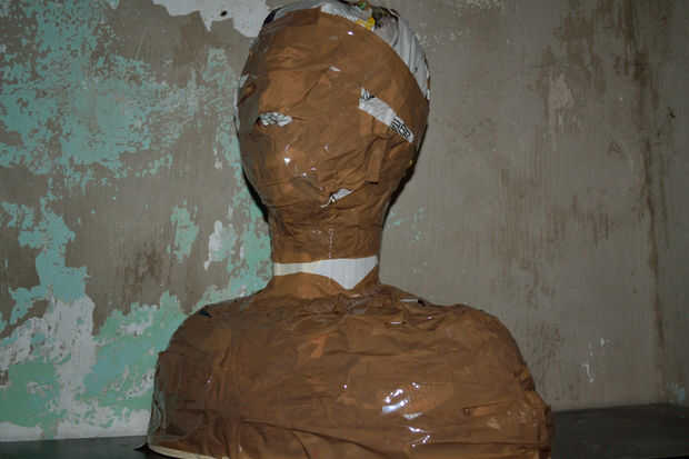 medir la altura de los hombros y forman con bolas de periódico y cartón. agregar la cinta cuando sea necesario.