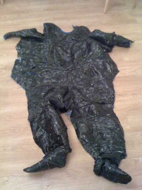 una vez que tu amigo ha cubierto en cinta hasta su cuello y las muñecas deben cortarlo cuidadosamente fuera de la misma con las tijeras médicas. Cortar por la parte trasera del cuello a la parte superior de las nalgas y luego abajo de cada pierna y bajando por el lado del pie. Cortan a través de los hombros y abajo de cada brazo y la cinta americana todo juego caerá lejos dejándote desnuda... opps.