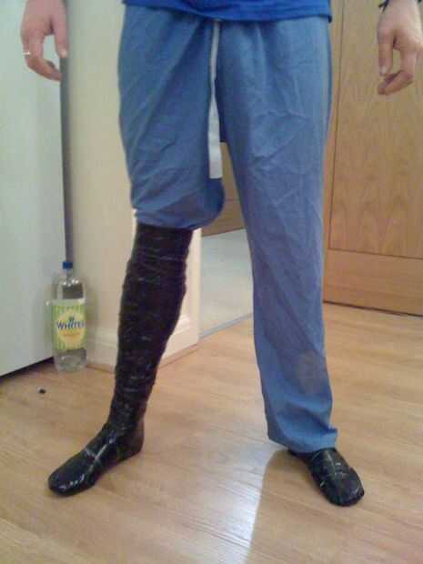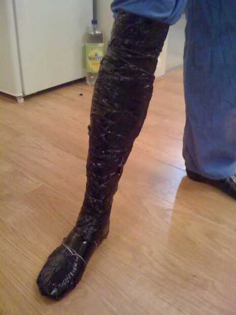 Ahora quiere hacerse su amigo para cubrirte en la cinta del conducto, mejor sacar una longitud y poner la cinta en mano si no que se consigue muy muy muy apretado y cortado su suministro de sangre que puede ser realmente peligroso para usted apagado.