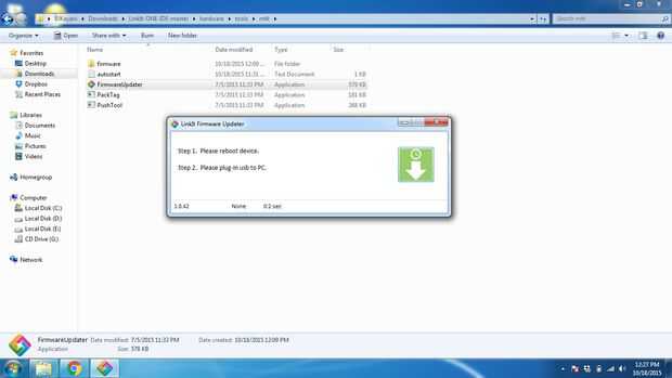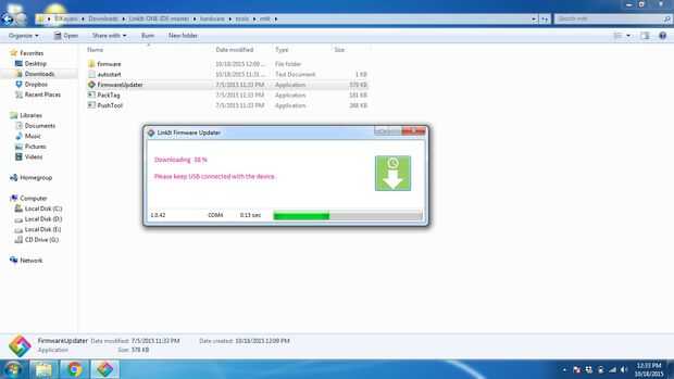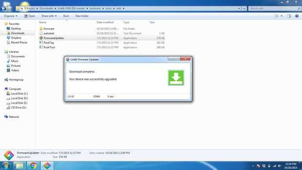 Asegúrese de que la batería está conectada y el interruptor de encendido está en la posición Batt. Inicie el software de actualización y haga clic en el icono de inicio. En este punto usted un Linkit desconectado del USB pero accionado sobre el uso de la batería. Cuando solicita, haga clic en el botón de reset y conectar a la PC mediante cable USB. Automáticamente detectar y actualizar el firmware. Tienes que esto rápidamente antes de los tiempos de espera de sesión.