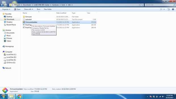 Así que este es un paso opcional pero te recomiendo que hagas esto. Asegúrese de que su Junta un Linkit tiene las posiciones correctas. Situado en posiciones de arranque de masa y SPI. Luego vaya a la configuración de actualización de firmware. Será dentro de la carpeta software.