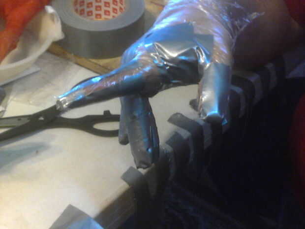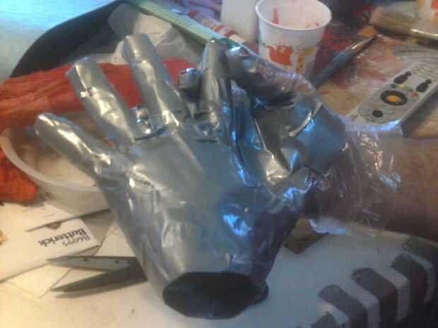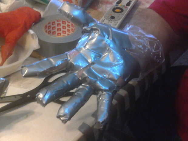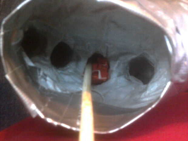 cosas con papel (o lo que elijas) utilizando palillos para empujar en los dedos. (trate de no sobre cosas.)