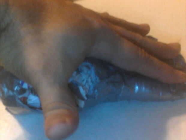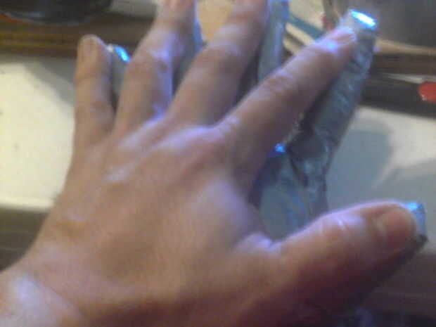 Kali necesita muchas manos. Tradicionalmente, ella tiene 4 pares de suyo (por lo menos) y un cinturón lleno de ellos. Tiempo de empezar!Nuevamente estoy haciendo un viejo caminante de aluminio en Kali, la diosa hindú de varios brazos, tres ojos de ti