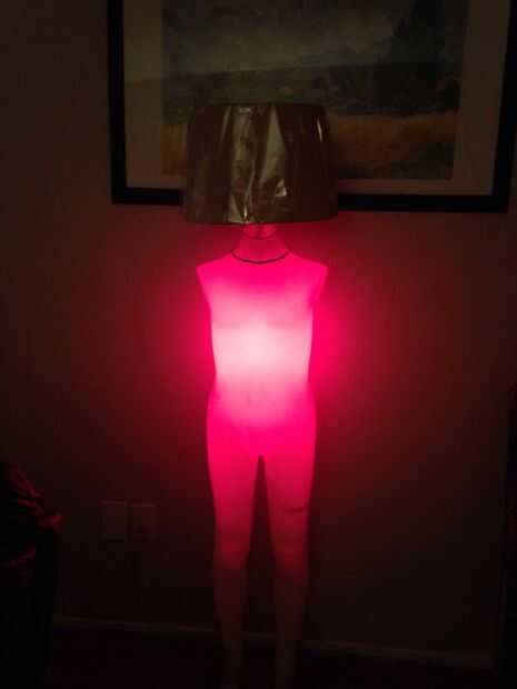 Primero alimenté el cable a través de los pies y el cuello. Mide el diámetro del cuello y había trazada sobre el plexiglás y recorte. Usé una sierra para metales para cortar el tubo de 36 pulgadas roscadas del kit de iluminación de la longitud a donde quería la luz para colgar en el pecho. Esto alimenta a través del plexiglás y atornilladas en lugar. A continuación corrió los cables de ambas luces y adjunta los zócalos de lámpara en la parte superior e inferior. Prueba montado y había conectado mi interruptor en la parte posterior. Había mucho de idas y venidas en cuanto a la prueba cabe fue. Una vez que la tenía donde yo quería soldar los cables Templeton lo jodido todos juntos.