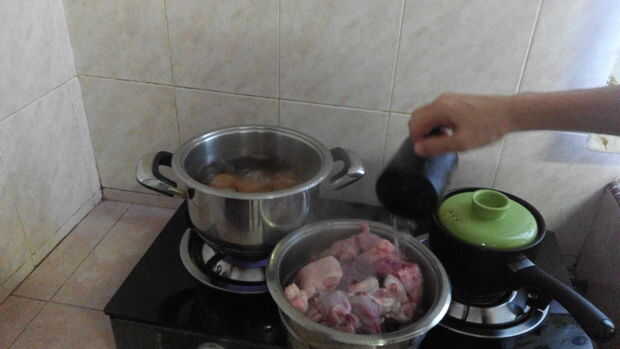 Manitas de cerdo en vinagre y jengibre cocido (3 / 6 paso)