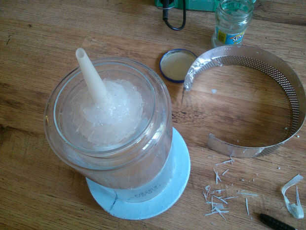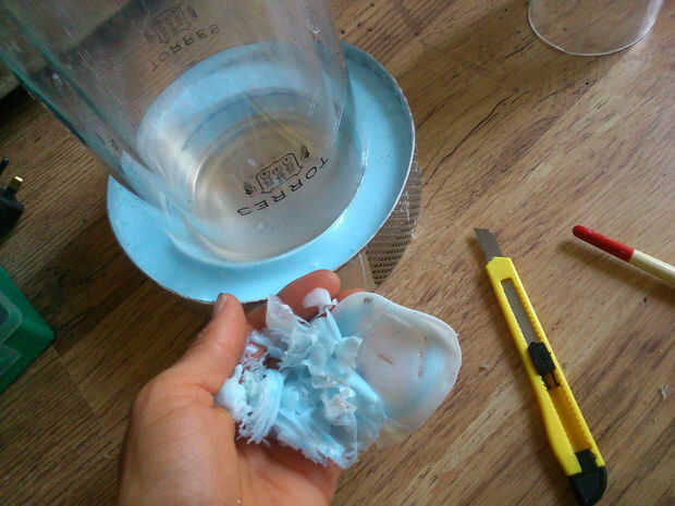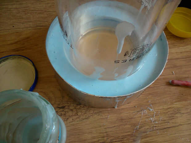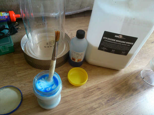 Después de dejar todo en lugar, mezcla y se vierte en el caucho de silicón.