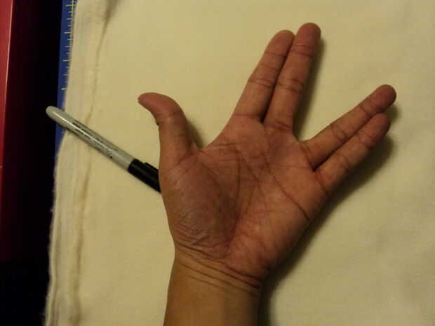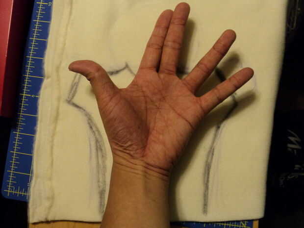Pon tu mano en un pedazo doble de capas de tela que usas para el cuerpo principal.