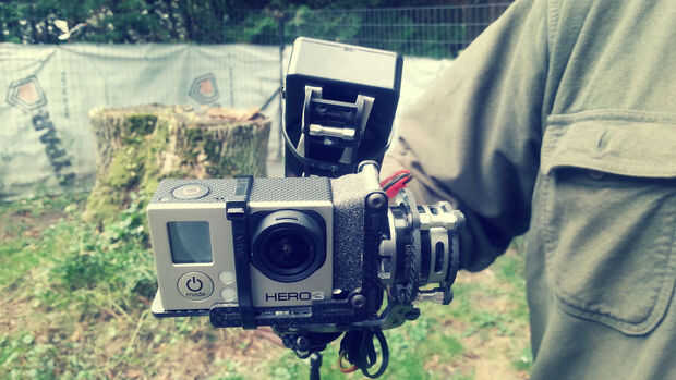 Para un funcionamiento óptimo, la cámara debe estar perfectamente equilibrada en su soporte, para que cuando los motores están apagados, no inclinar o fracaso hacia un lado o el otro. Esto irá mucho, especialmente cuando se está programando su tablero para la operación. Como se puede ver en la mía, con el retiro de las piezas extras, la cámara encuentra 3/4" lejos del borde del marco, así que para compensar, he añadido algunos ligera espuma para llenar la brecha y ayudar a asegurar la cámara.